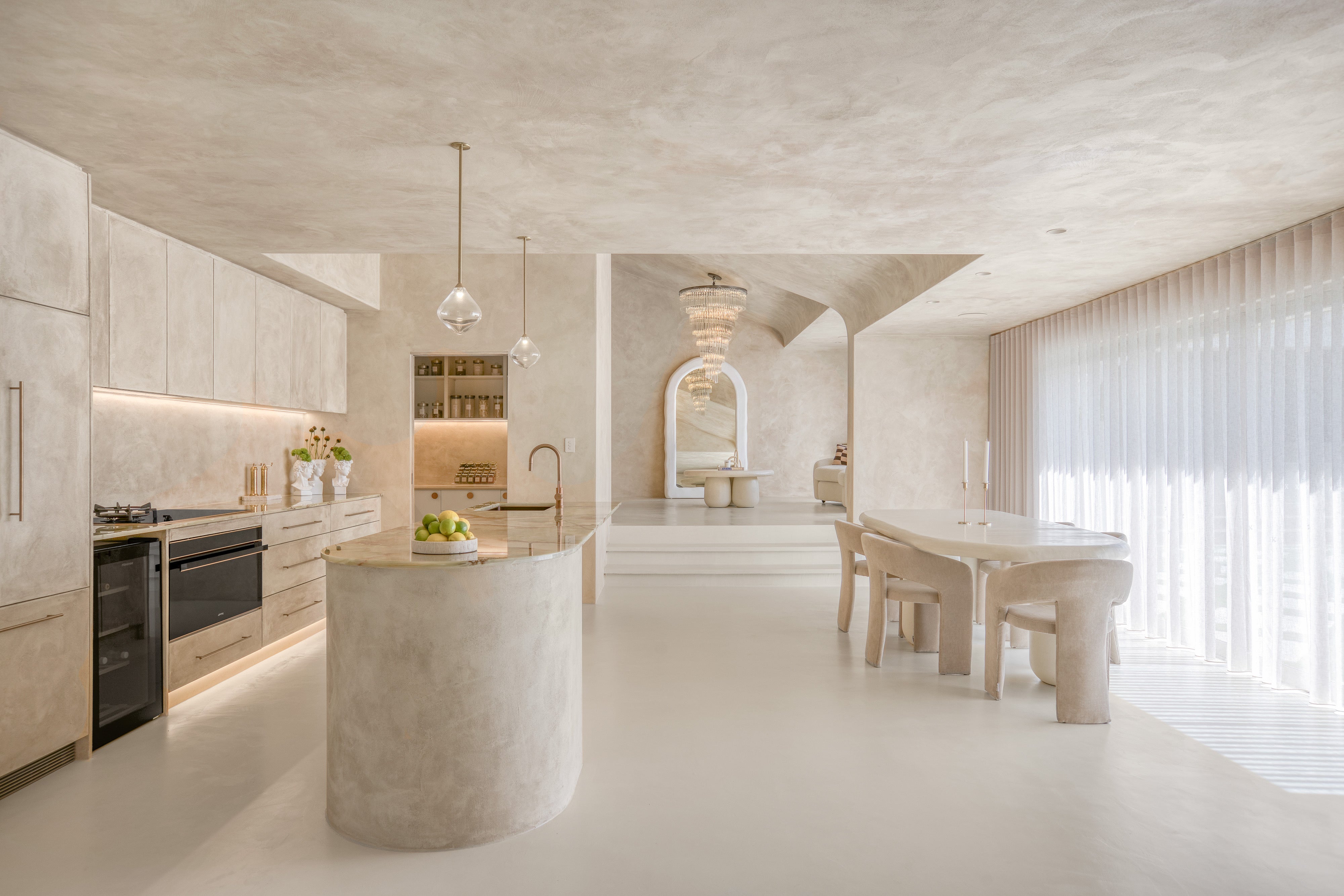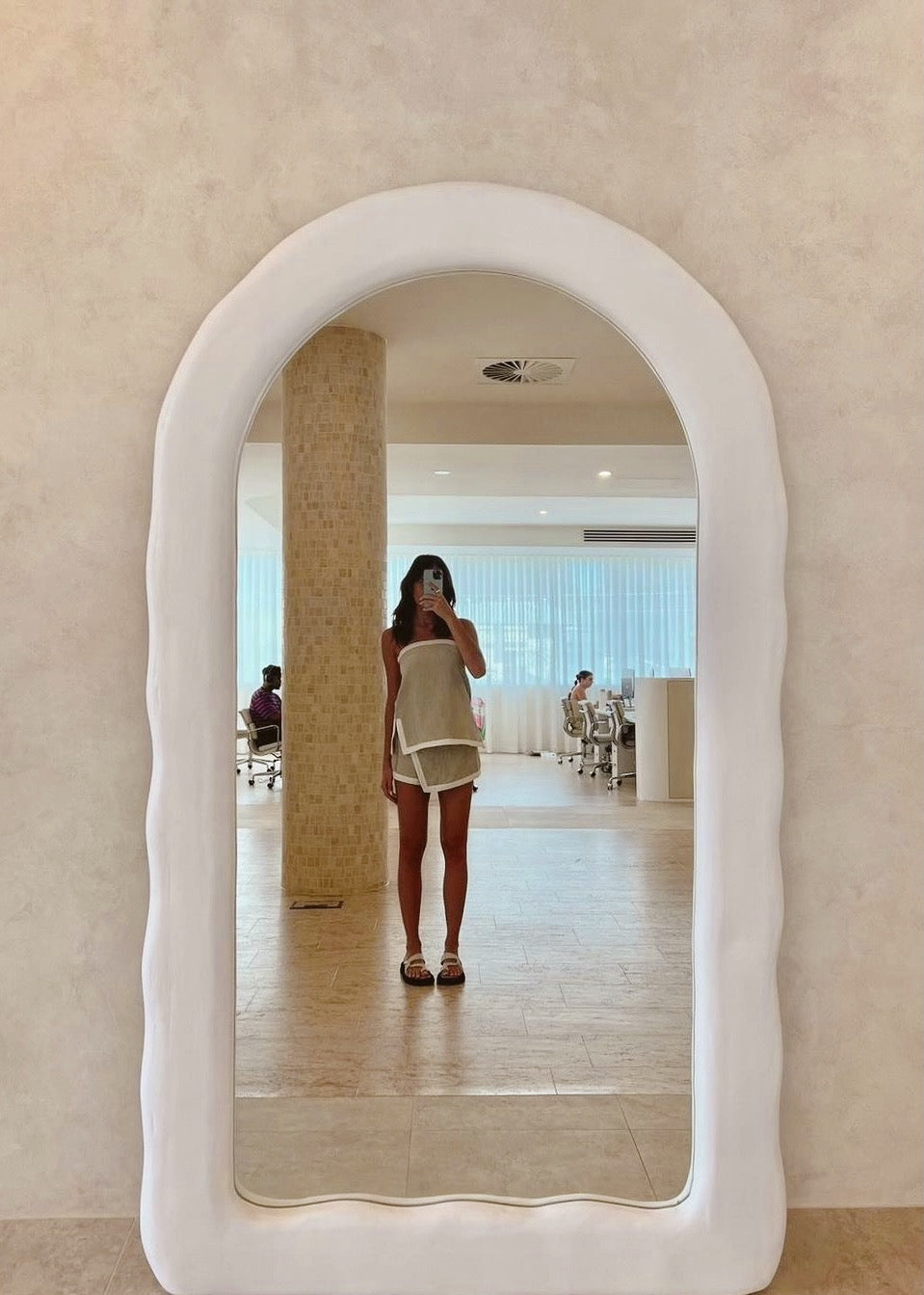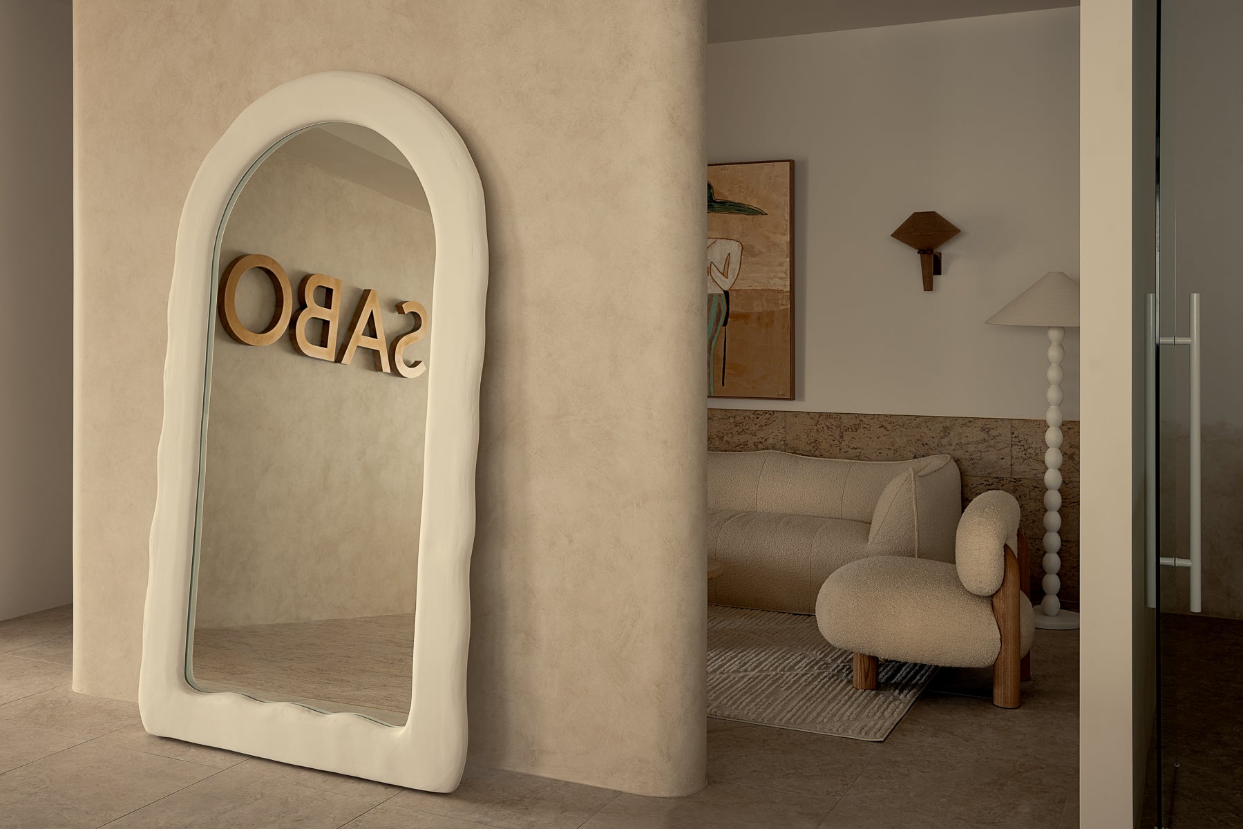 The original Santorini arch mirror, defined by rendered plaster curves and soft integrated lighting. A forever piece, designed to last a lifetime.