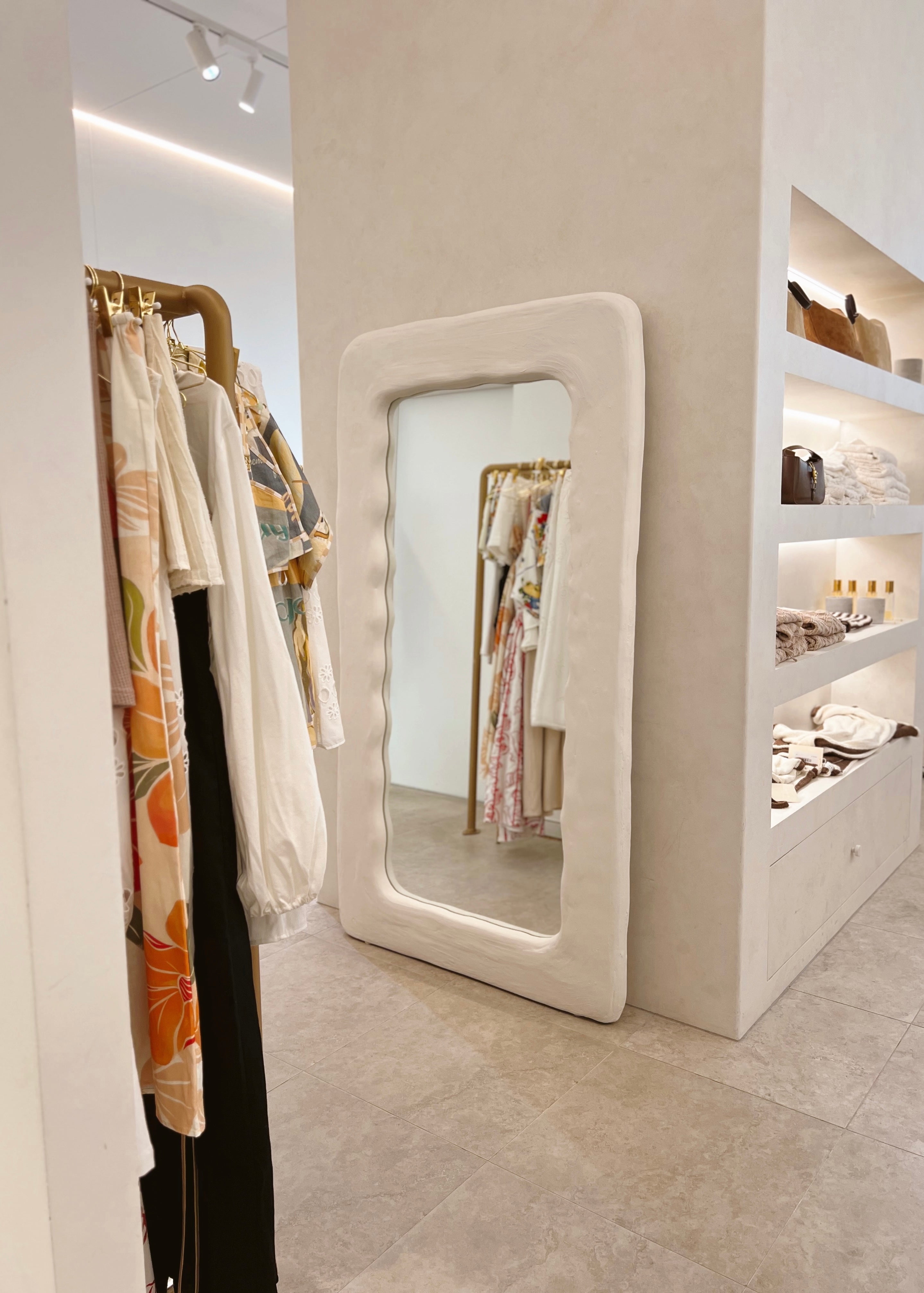 Designed for indoor dry areas only, however is finished with a custom high quality base and top coat insuring longevity and protection of your mirror. Our Santorini Arch Mirror is designed as a leaning floor mirror with anti slip feet. We recommend a professional safety install ( Safety kit included ) with the base distance of 15cm from the wall. We recommend cleaning with a microfiber damp cloth with water and natural cleaning products only.